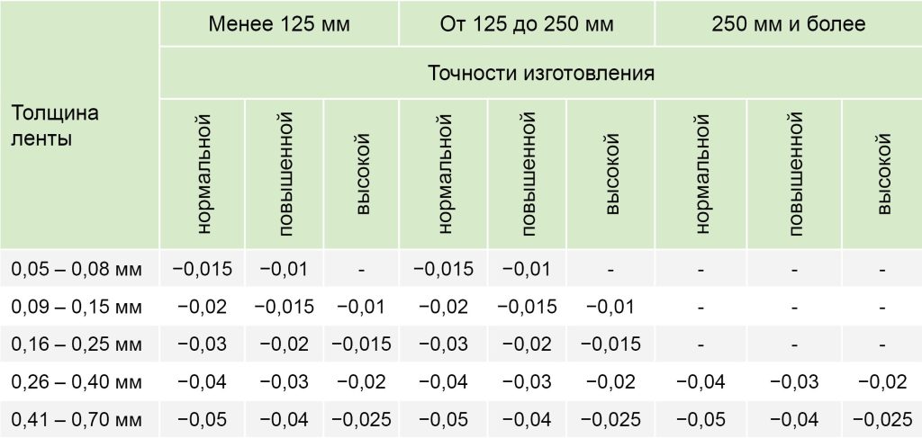 | 65Г | 0,15 – 2,0 мм | 4,0 – 600,0 мм |
